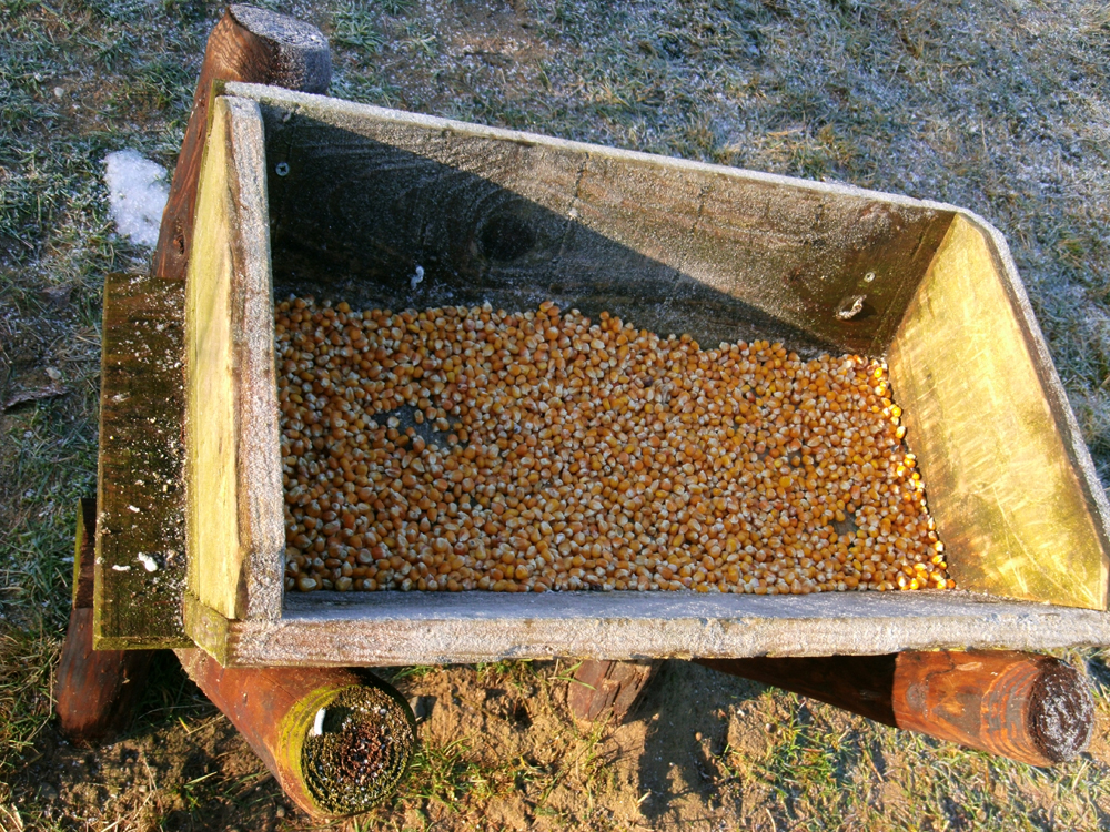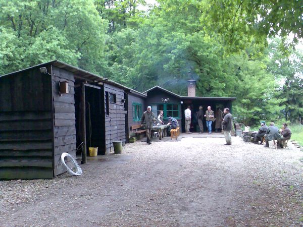 Nu we toch bij Cartouche zijn is dit de juiste plaats om aanschouwelijk te maken, hoe hobbyjagers hun taak als niet gekwalificeerd faunabeheerder inhoud menen te mogen geven. Want tegenover een exorbitant hoog afschot placht men het grofwild op grote schaal bij te voederen. Dat gebeurde in het geval van zwijnen decennialang met schiere eieren en eendagskuikens die men betrok van locale broederijen en van de onderzoeksinstelling voor de pluimveehouderij Het Spelderholt te Beekbergen. De mogelijkheid is niet uitgesloten dat dit nog altijd gebeurd in het diepst van de houtvesterijen of in voor publiek afgesloten schietterreinen. De Cartouche clan 'beheert' het wild rond Speuld en Drie en wakkert de productiviteit van zwijnen en herten aan door grootscheepse bijvoedering (foto 7 en 8) Daarmee treedt men de Flora en Faunawet met voeten! Maar dit moet slechts peanuts zijn in vergelijking met de activiteiten van de Fbe Veluwe en van de Koninklijke Houtvesterijen, die wij ons ongeveer zó voorstellen (foto 9). Want de kost gaat altijd vooraf aan de baat!