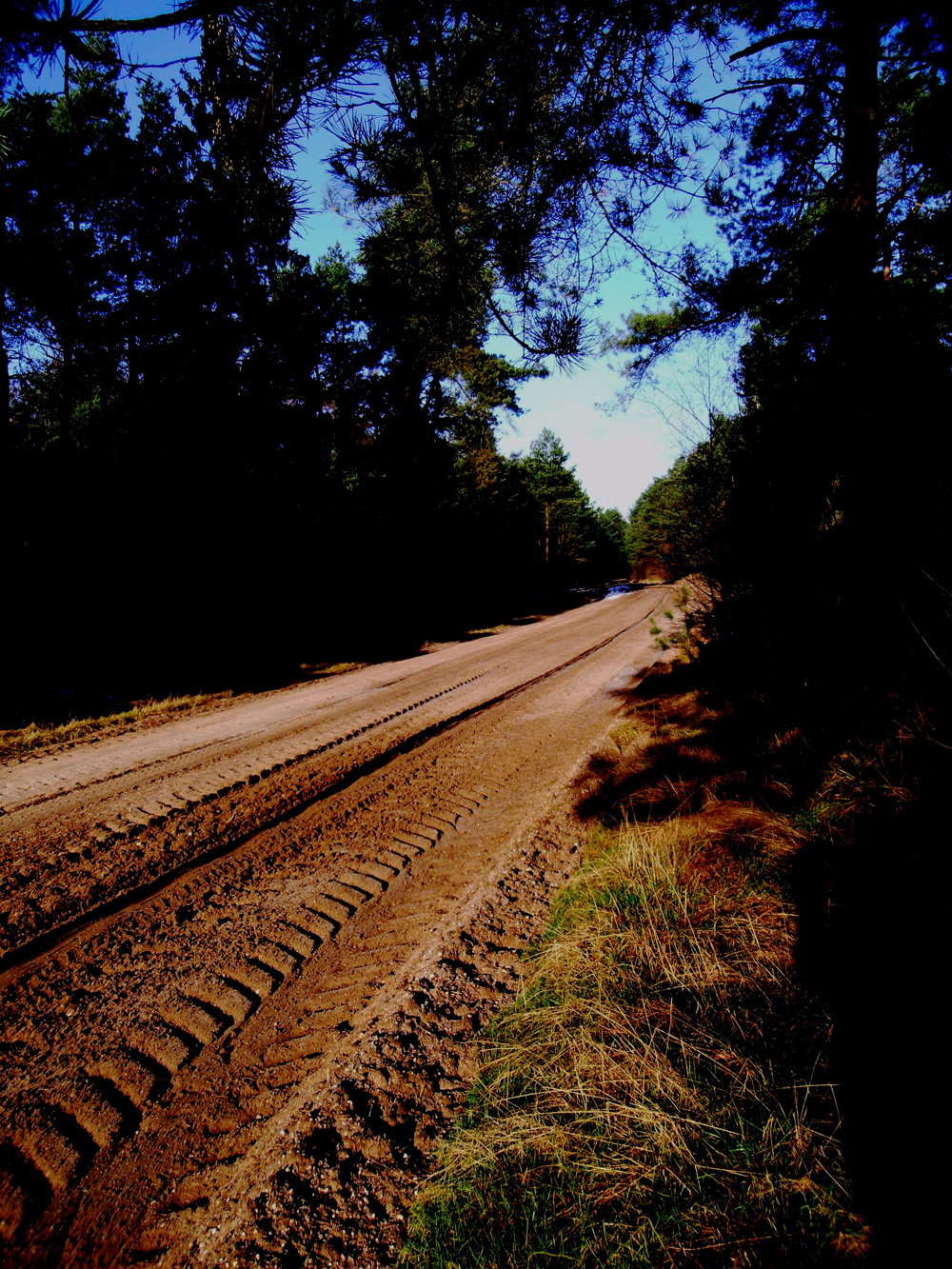 Maar amper weer terug uit het bos na het fotografisch vastleggen van verse hertenuitwerpselen (foto 14), naderde er over het slechtste gedeelte van de drijfnatte zandweg de man waarnaar ik al een tijdje liep uit te kijken: Gert de boswachter (foto15)! Ik kende hem wél maar hij mij niet en dat heeft in zulke situaties alleen maar voordeel.
